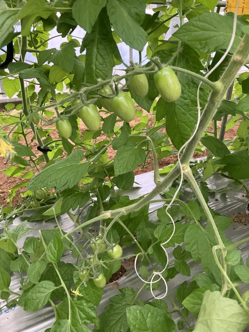 11月はトマトの実がつきだして大きくなりました。収穫まであと少しというところです。株の大きさも150~180cmくらいまで成長しましたので、これから長い期間収穫をしていくために斜め誘引をしていきます。年内には収穫できる予定ですが、1日でも早く収穫できないかなと待ち遠しい気持ちを感じながら、日々の栽培管理を続けています。