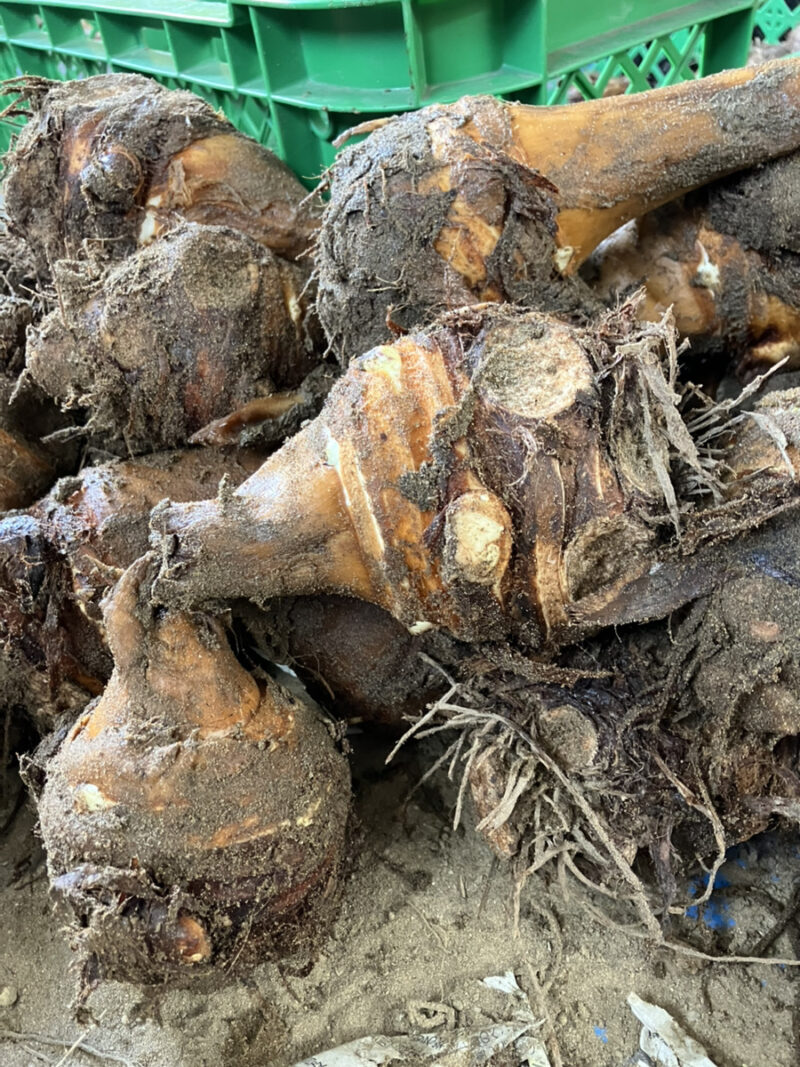 通常、市場に出回るのはこの小芋部分で、親芋はあまり食べられていません。