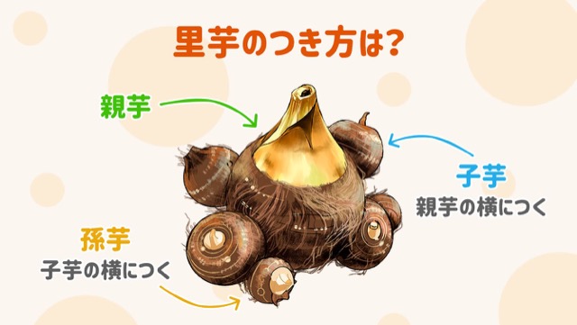 真ん中に大きな親芋があり、その周りに小さな実をつけています。それがみなさんが普段召し上がっている里芋です。